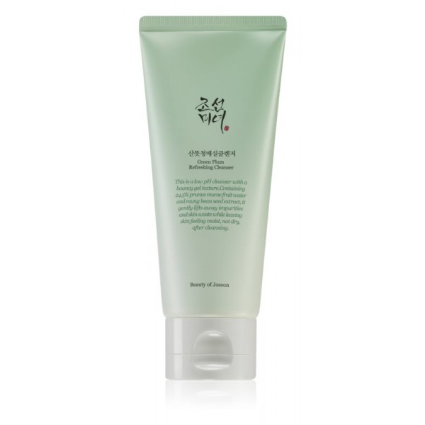 Το Beauty Of Joseon Green Plum Refreshing Cleanser είναι ένα ήπια όξινο καθαριστικό τζελ προσώπου, που περιέχει εκχύλισμα σπόρων Mung Bean και νερό από δαμάσκηνο.