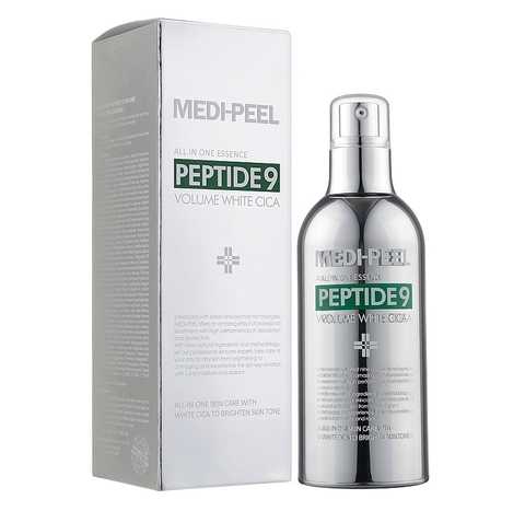 Το MEDI-PEEL Peptide 9 Volume White Cica Essence είναι ένα ενισχυμένο essence απόσταγμα που περιέχει σύμπλεγμα 9 πεπτιδίων για την ενίσχυση της σφριγηλότητας και της ελαστικότητας του δέρματος.